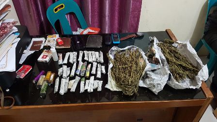 Adapun barang bukti yang berhasil diamankan berupa dua paket besar dan 30 paket kecil ganja lebih kurang seberat (250 gram), satu paket kecil shabu, tiga unit HP dengan berbagai merek, satu buah alat isap (bong), dan 5 buah korek api.