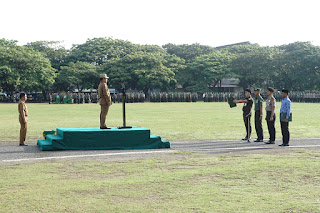 Banda Aceh – Wali Kota Banda Aceh Aminullah Usman didaulat menjadi inspektur upacara (Irup) bendera gabungan instansi se-garnizun Banda Aceh, Selasa (17/4/2018) di Lapangan Blang Padang.
