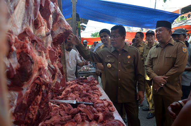 Bersama Kepala SKPK terkait, keduanya melakukan peninjauan ke sejumlah pasar daging meugang di antaranya pasar daging Peunayong, Beurawe, Ulee Kareng, dan Peuniti.