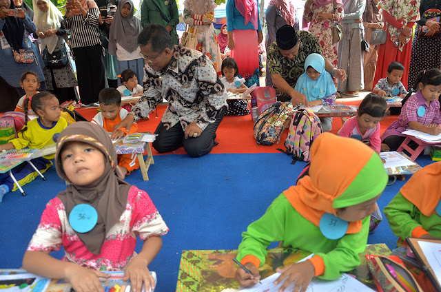 Mulai dari lomba mewarnai, merangkai sirih, menghias thumpoe, hingga lomba menghias payung pun digelar di halaman balai kota. Beragam wahana permainan anak pun tersedia di sana.