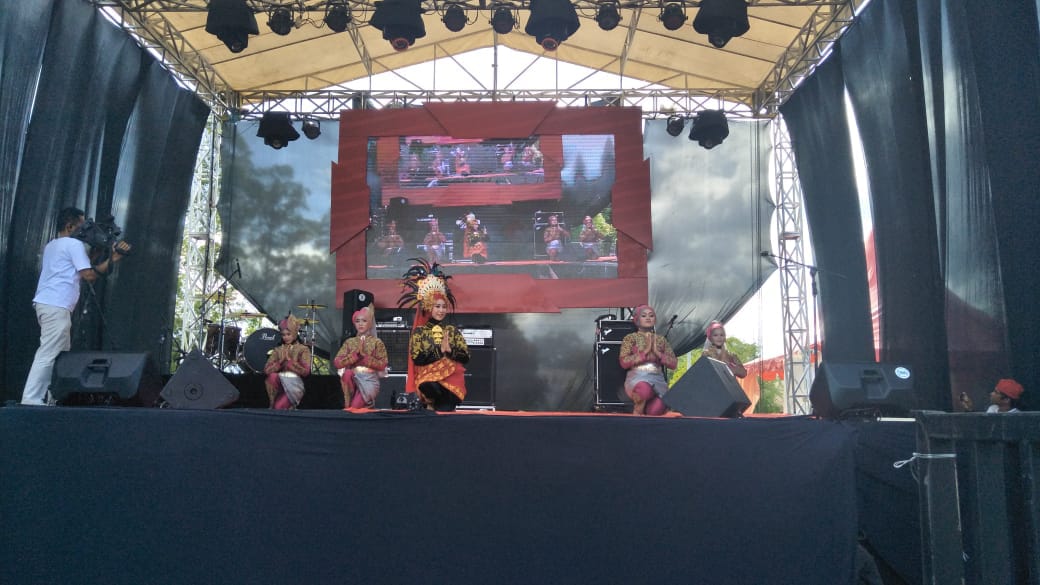 HN-KOTA JANTHO – Dewan Kesenian Aceh (DKA) Kabupaten Aceh Besar menggelar pagelaran seni budaya dan malam hiburan rakyat di lapangan Data Geumpung Kota Jantho, Sabtu (7/7/2018). Pentas yang disi oleh sejumlah sanggar seni dan budaya serta penampilan tim 10 Am dan Group Band Apache13 dibuka oleh Ketua MAA Kabupaten Aceh Besar, H Zaini Z Alwi