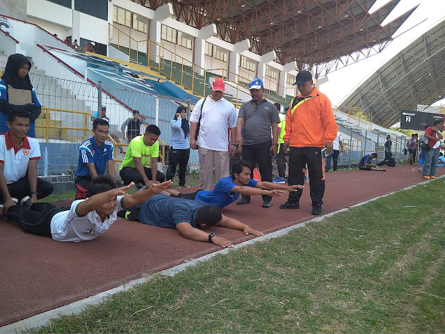 Tambahnya, item yang dilakukan tes hari ini yaitu daya tahan jantung dan paru, dimana kesemua atlet tersebut dilakukan tes Shit-up, lari keliling lapangan dan beberapa tes lainnya.
