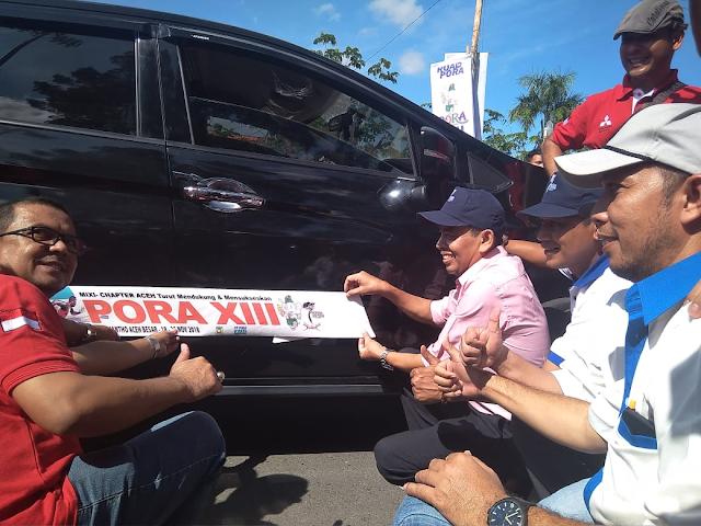 HN-Aceh Besar, Menjelang pelaksanaan Pekan Olahraga Aceh (PORA) XIII yang akan berlangsung di Kota Jantho pada 18 – 25 November 2018, Panitia Penyelengara PORA melakukan Road Show RORA bersama Komunitas Mitsubshi Xpander Indonesia Chapter Aceh di pelataran parkir Stadion H. D. Murtala, Minggu (21/10/2018).