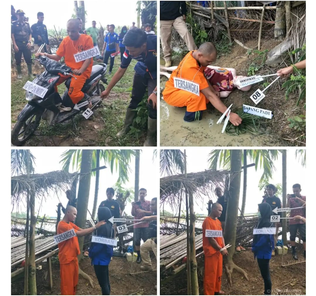 Polres Aceh Tamiang Gelar Rekontruksi Pembunuhan di Wanita di Sawah