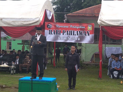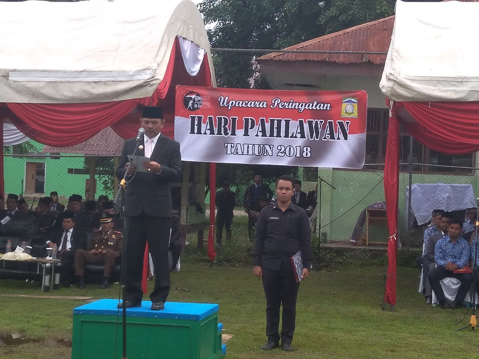 Bupati Aceh Besar Ir Mawardi Ali membacakan amanat menteri Sosial RI, setiap tahun pada tanggal 10 November, memperingati hari pahlawan untuk mengenang hari peristiwa pertempuran di Surabaya, pada 73 tahun silam yang merupakan perang fisik pertama.