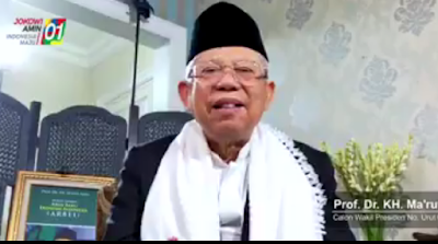 Berdasarkan video berdurasi 21 detik yang tersebar di laman media sosial Facebook, Instagram, dan juga di grup-grup whatsap, Cawapres nomor urut 01 Ma’ruf Amin tampak dalam vidio tersebut mengenakan jas hitam yang dipadu surban putih dan peci hitam.