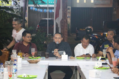 Kegiatan kemitraan malam itu diwarnai tanya jawab dan saling tukar informasi antara Kabid Humas dengan awak media.