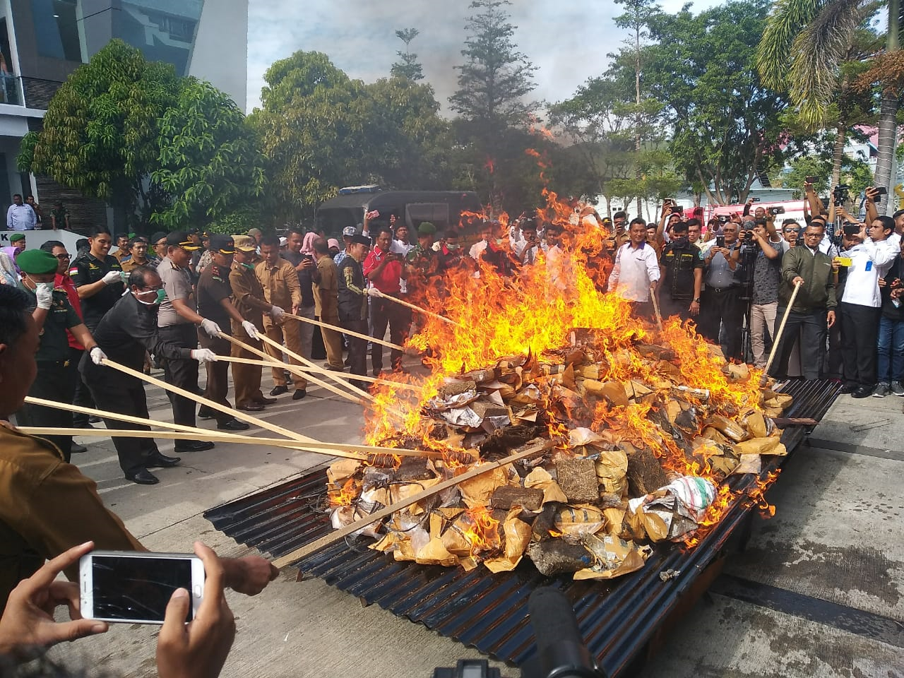 Pemusnahan dimulai dengan narkotika jenis sabu. Wali Kota Banda Aceh, Aminullah Usman dan Kapolresta, Kombes Pol Trisno Riyanto, Ketua DPRK Banda Aceh, Arif Fadillah, dan Kajari Aceh Besar, Mardani memusnahkan barang haram ini dengan cara memblender.