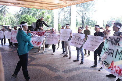 Salah satu orator mengatakan dalam sebulan terakhir telah terjadi banjir bandang selama empat kali. Tapi belum sekalipun Plt Gubernur datang ke sana.