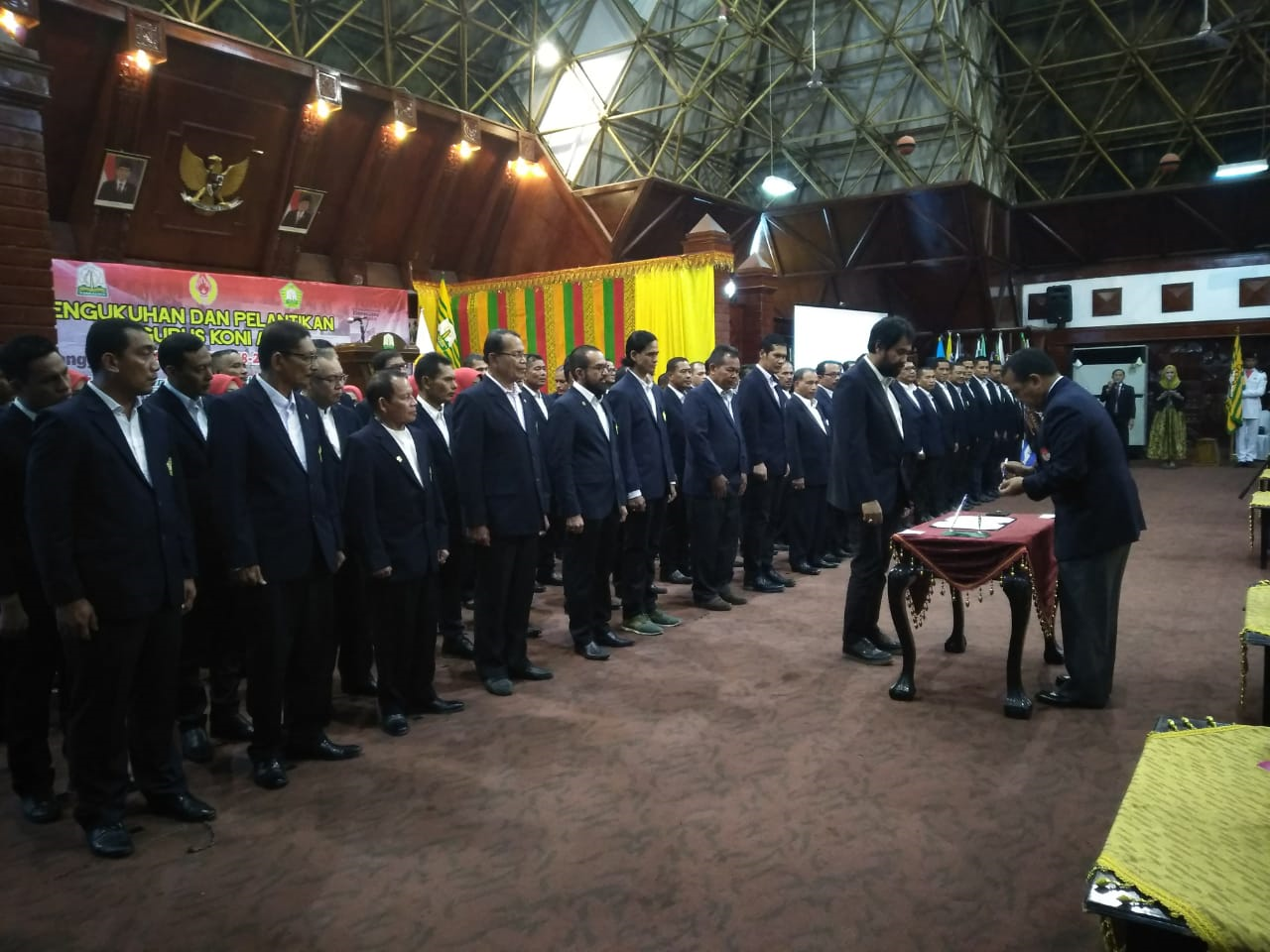 Muzakir Manaf yang akrap disapa Mualem bersama para pengurus KONI lainnya dilantik oleh Ketua Umum KONI Pusat, Mayjen TNI (Purn) Tono Suratman.