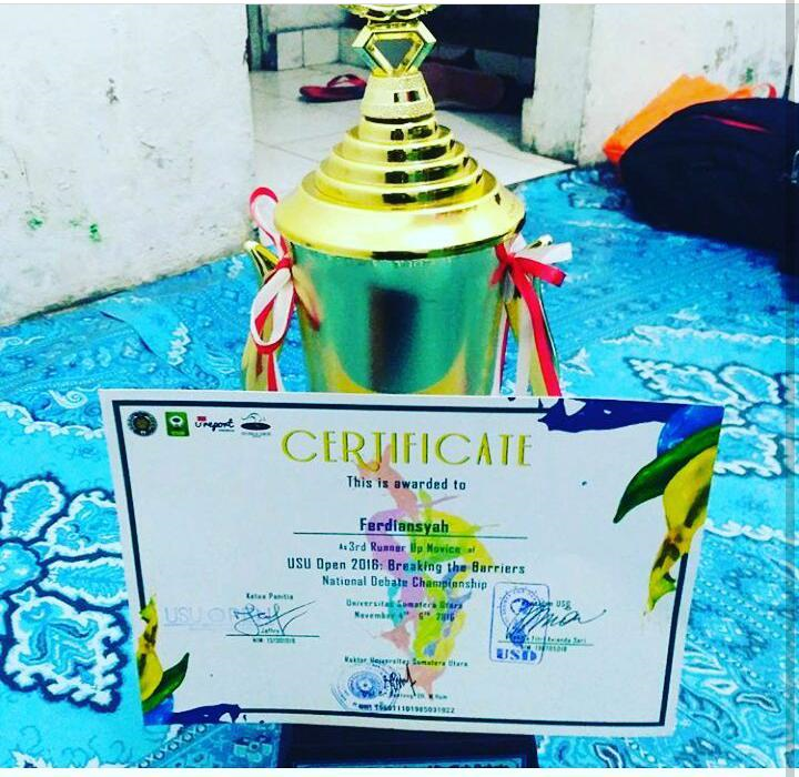 Dengan bahasa inilah dia dapat memperoleh berbagai penghargaan baik di kampus atau di luar kampus. Prestasi yang diperoleh Ferdiansyah (21) lebih banyak di bidang bahasa inggris karena kurangnya perlombaan yang bergerak di bidang bahasa asing selain bahasa inggris