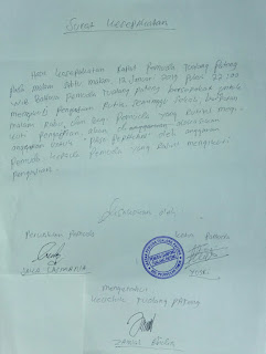 Surat Kesepakatan Pemuda Tualang Pateng dalam menerapkan pengajian.