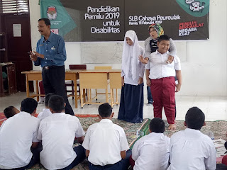“ya kegiatan ini kita lakukan untuk memberikan ilmu kepada para Siswa dan Siswi Disabilitas agar tidak golput pada tahun 2019 nanti,” jelasnya Sofyan.