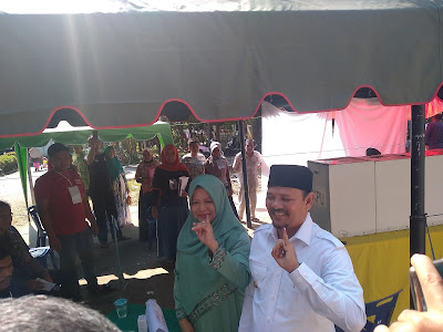 Bupati Aceh Besar Mawardi Ali bersama Istri Ny Rahmah mendatangi TPS sekitar pukul 10.10 WIB untuk nentukan pilihanya pada pemilihan legislatif (Pileg) dan Pemilihan presiden (Pilpres).