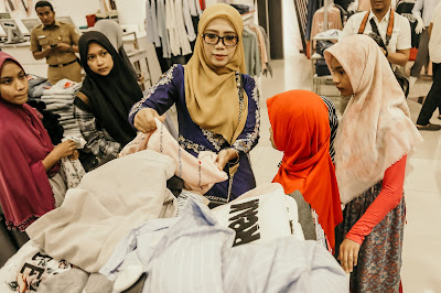HN-Banda Aceh – Dyah Erti Idawati bersama pengurus Badan Kontak Majelis Taklim (BKMT) Aceh, berbagi bersama 25 anak yatim dari Kota Banda Aceh dan Besar. Mereka dibawa berbelanja pakaian lebaran di MatahariMall, Senin 27/05.