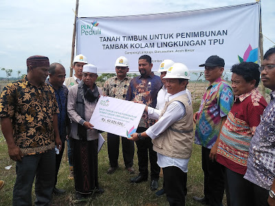 Penyerahan Bantuan CSR tersebut dilakukan secara simbolis oleh Manager PLN UIP Sumbagut UPP Jaringan Aceh, Khairizal yang diterima langsung oleh Wakil Bupati Aceh Tgk H Husaini A Wahab kemudian diserahkan kembali kepada Keuchik Gampong Lampuja dilokasi penimbunan Tambak Kolam Lingkungan TPU.