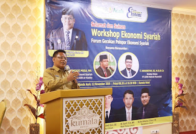 Habanusantara.net, Banda Aceh – Forum Gerakan Ekonomi Syariah, Selasa (12/11/2019) menggelar workshop ekonomi syariah. Kegiatan ini dibuka oleh Wali Kota Banda Aceh yang juga Ketua Umum Masyarakat Ekonomi Syariah (MES) Provinsi Aceh, Aminullah Usman di Aula Hotel Keumala, Banda Aceh.