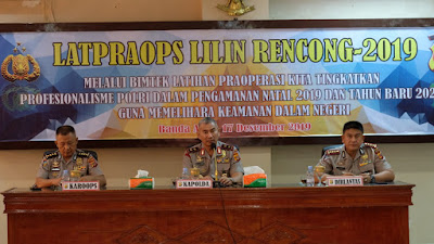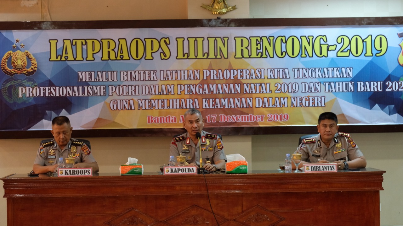 Habanusantara.net, Banda Aceh – Polda Aceh, Selasa (17/12) pagi, menggelar pelatihan pra operasi (Latpraops) Lilin Rencong 2019, di aula Machdum Sakti, Lantai 3 Mapolda Aceh.