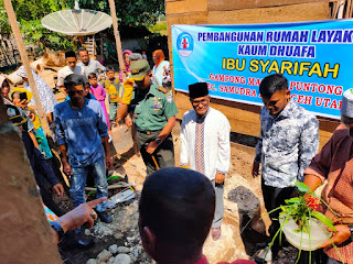 Habanusantara.net, Aceh Utara – Lembaga Peduli Dhuafa Indonesia (LPD Indonesia) bersama Dandim 0103 Aceh Utara Letkol Inf Agung Sukoco, SH, menghadiri acara peletakan batu pertama pembangunan rumah layak huni Nenek Syarifah (69 tahun) di Gampong Matang Puntong Kecamatan Samudera Kabupaten Aceh Utara.