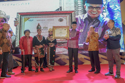 Penghargaan itu diterima langsung oleh Pelaksana Tugas Gubernur Aceh, Nova Iriansyah dari Pimpinan Umum Serambi Indonesia Sjamsul Kahar.