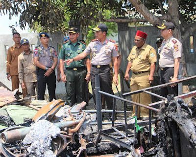 Kapolda meninjau Polsek tersebut setelah sehari sebelumnya terbakar.