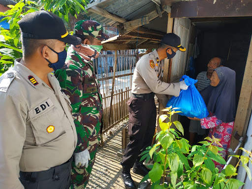 Antisipasi Covid-19, Jajaran Polda Bersama TNI Bagi Sembako Untuk Kaum Dhuafa
