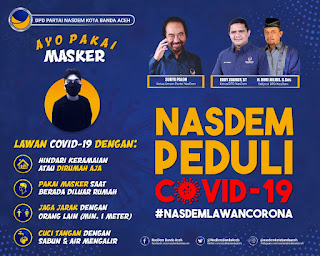 Selanjutnya, ketua partai NasDem Kota Banda Aceh, Eddy Zuardy, menekankan pada masyarakat untuk selalu memakai masker saat keluar rumah untuk mengantisipasi terjangkitnya wabah Covid19.