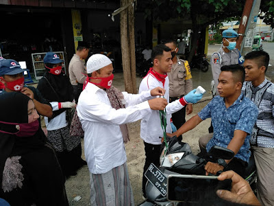 Habanusantara.net, Aceh Besar – Bupati Aceh Besar Ir H Mawardi Ali bersama jajaran Dinas Kesehatan dan relawan PMI Aceh Besar bagi-bagi masker kepada para jamaah menjelang pelaksanaan Shalat Jumat di Masjid Besar Al Faizin, Lampeneurut, Kecamatan Darul Imarah, Kabupaten Aceh Besar, Jumat (10/4/2020).