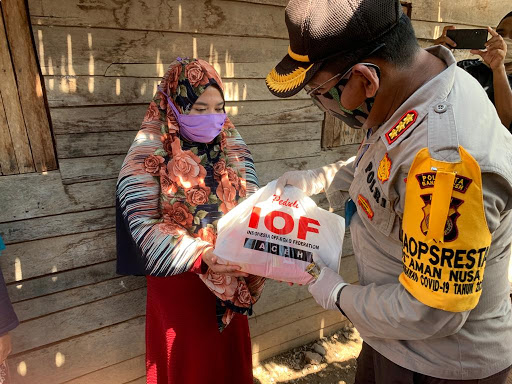 Peduli Pandemi Covid-19, IOF Aceh dan Polresta Banda Aceh Bagi Sembako