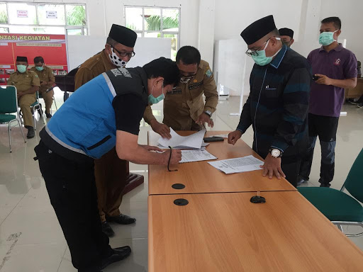 Kepala Dinas Sosial Aceh, Alhudri, yang diwakili oleh Kepala UPTD Rumoh Seujahtra Beujroh Meukarya (RSBM) Dinas Sosial Aceh, Yusri, memimpin rombongan untuk mengantarkan dan menyerahkan langsung paket sembako yang diterima Bupati Seumilue, Erli Hasim, dan Wakil Bupati Afridawati di halaman kantor bupati setempat, Selasa 28/4/2020.