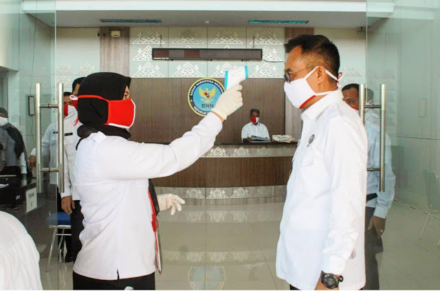 Cegah Penyebaran Corona, Pejabat dan Staf BNNP Aceh Diperiksa Suhu Tubuh