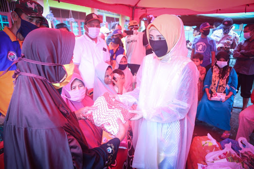 Habanusantara.net, Aceh Besar – Istri Plt Gubernur Aceh, Dyah Erti Idawati didampingi Kepala Dinas Sosial Aceh Alhudri menyerahkan bantuan logistik kepada korban terdampak banjir yang mengungsi di SD Negeri Gampong Garot, Kecamatan Darul Imarah, Aceh Besar, Sabtu, 9/5/2020.