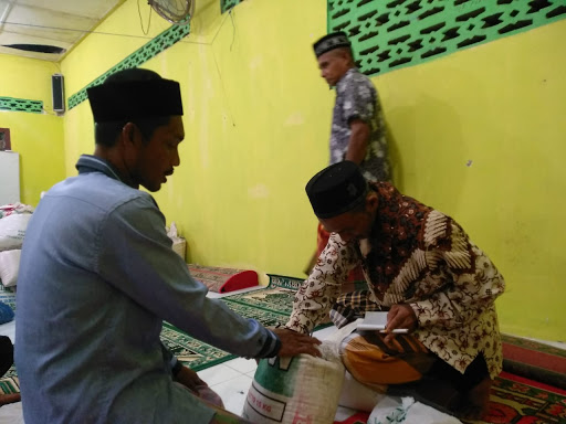 | Salah Satu Masyarakat Gampong Geudong Panton menyerahkan Zakat Fitrahnya kepada Tgk Umum Gampong, di Menasah Setempat, Sabtu (23/5/2020) malam |