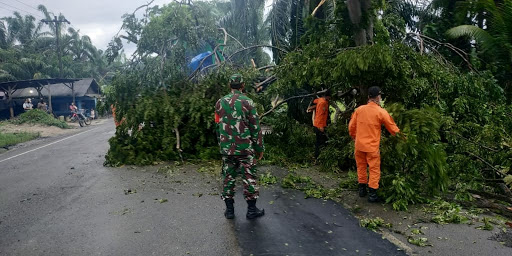 Tim BPPD Aceh Tamiang dibantu TNI dan Polri serta masyarakat sudah membersihkan pohon tumbang di atas badan jalan kawasan Seumadam itu.
