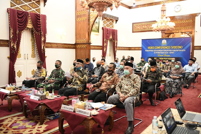 Hal tersebut dibahas dalam Forum koordinasi Pimpinan Daerah (Forkopimda) Aceh dan Forkopimda Kabupaten/Kota di wilayah perbatasan Aceh-Sumatera Utara. Rapat Forkopimda melalui video conference tersebut digelar di Meuligoe Gubernur Aceh, Sabtu, (27/6/2020).