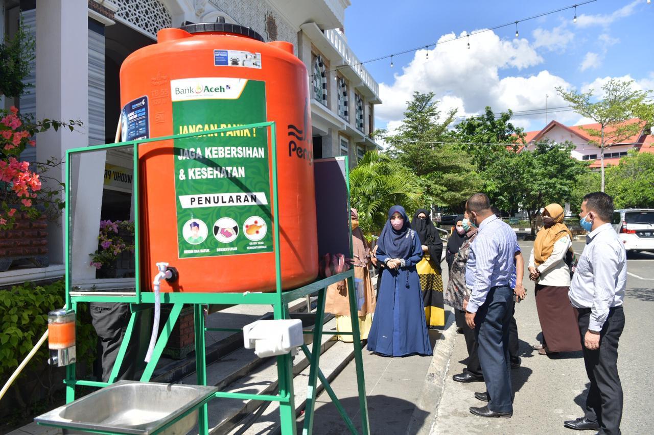 Habanusantara.net, BANDA ACEH – Wakil Ketua Gugus Tugas Covid-19 Aceh, Dyah Erti Idawati, menyerahkan alat cuci tangan atau wastafel portable kepada pengurus Masjid Raya Baiturrahman dan Masjid Al Makmur Lampriet, bantuan yang bersumber dari dana Corporate Social Responsibility (CSR) atau tanggungjawab sosial perusahaan dari PT Bank Aceh Syari’ah, Selasa (9/6/2020).