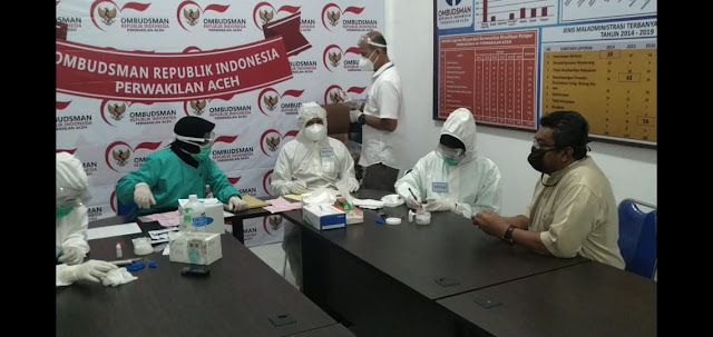 Tim dari Laboratorium Dinas Kesehatan Aceh menyebutkan bahwa hari ini mereka melakukan rapid test di Ombudsman RI Perwakilan Aceh dan di Taspen Banda Aceh.