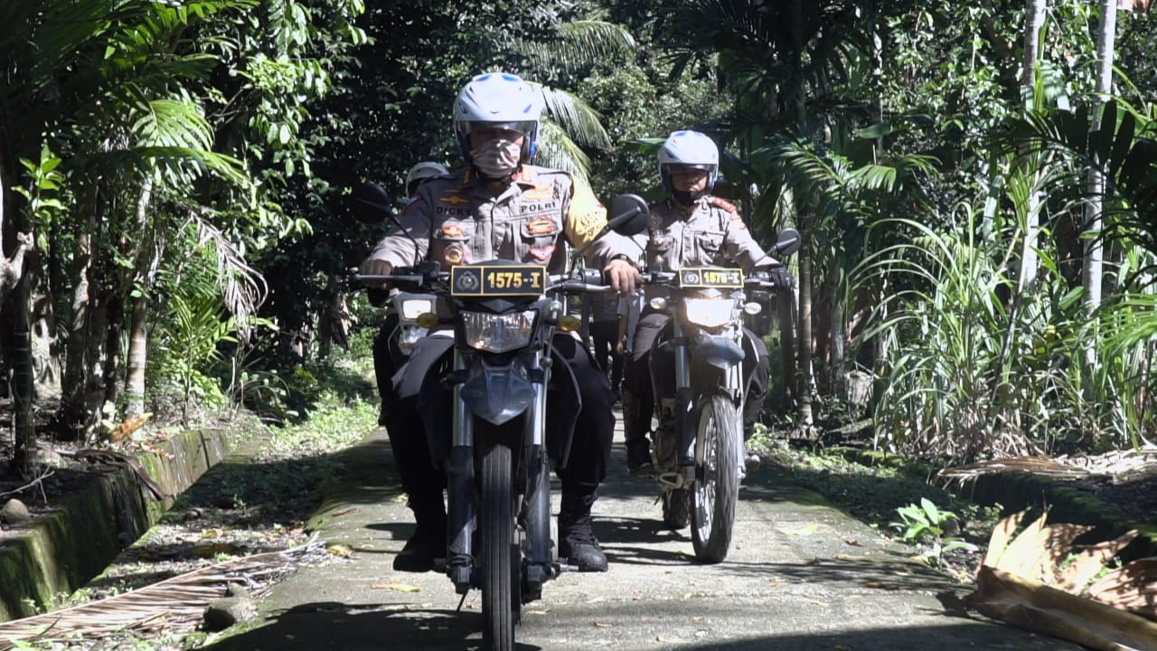 Rombongan Orang Nomor satu di Direktorat Lalu Lintas (Ditlantas) Polda Aceh mengantar sembako untuk warga Panca Kubu menggunakan sepeda motor dan melewati sungai dan jalan batu.