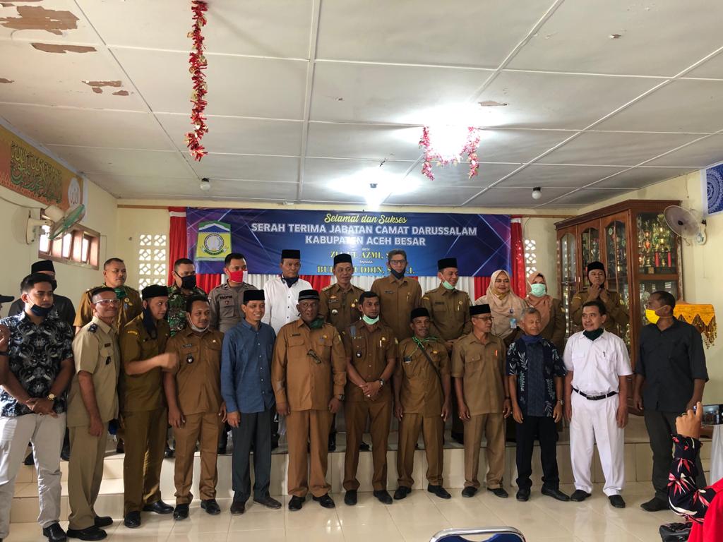 Pisah sambut dan serah terima tugas Camat Darussalam dilakukan Bupati Aceh Besar yang diwakili Asisten III Bidang Administrasi Umum Setdakab Aceh Besar Jamaluddin SSos MM berlangsung lancar dan hikmat.