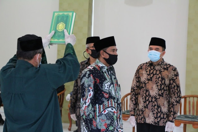 Pelantikan dilakukan dengan menerapkan protokol kesehatan dan keselamatan seperti mengenakan masker, sarung tangan dan tetap menjaga jarak.