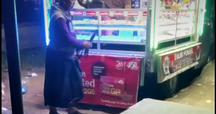 Atas aksi tersebut sempat terekam video saat mengancam pedagang pulsa dengan sembilang parang, pada Sabtu malam ( red-malam ini) pria tersebut kembali datang kepada pedagang mobil cell tersebut dan pria itu memukul pedagang tersebut akibat telah mengunggah video aksinya.