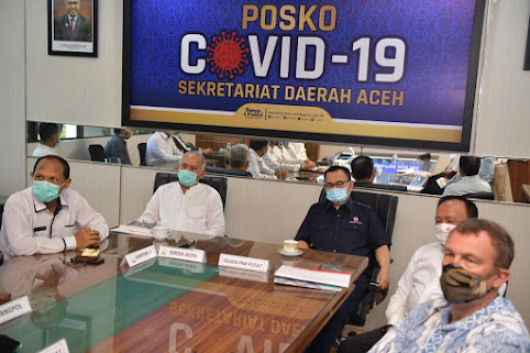 Sekretaris Daerah Aceh,Taqwallah silaturrahmi dengan Sekjen PMI Pusat, Sudirman Said beserta rombongan di ruang rapat sekda, Kantor Gubernur Aceh, Banda Aceh, Jumat, (9/10/2020).
