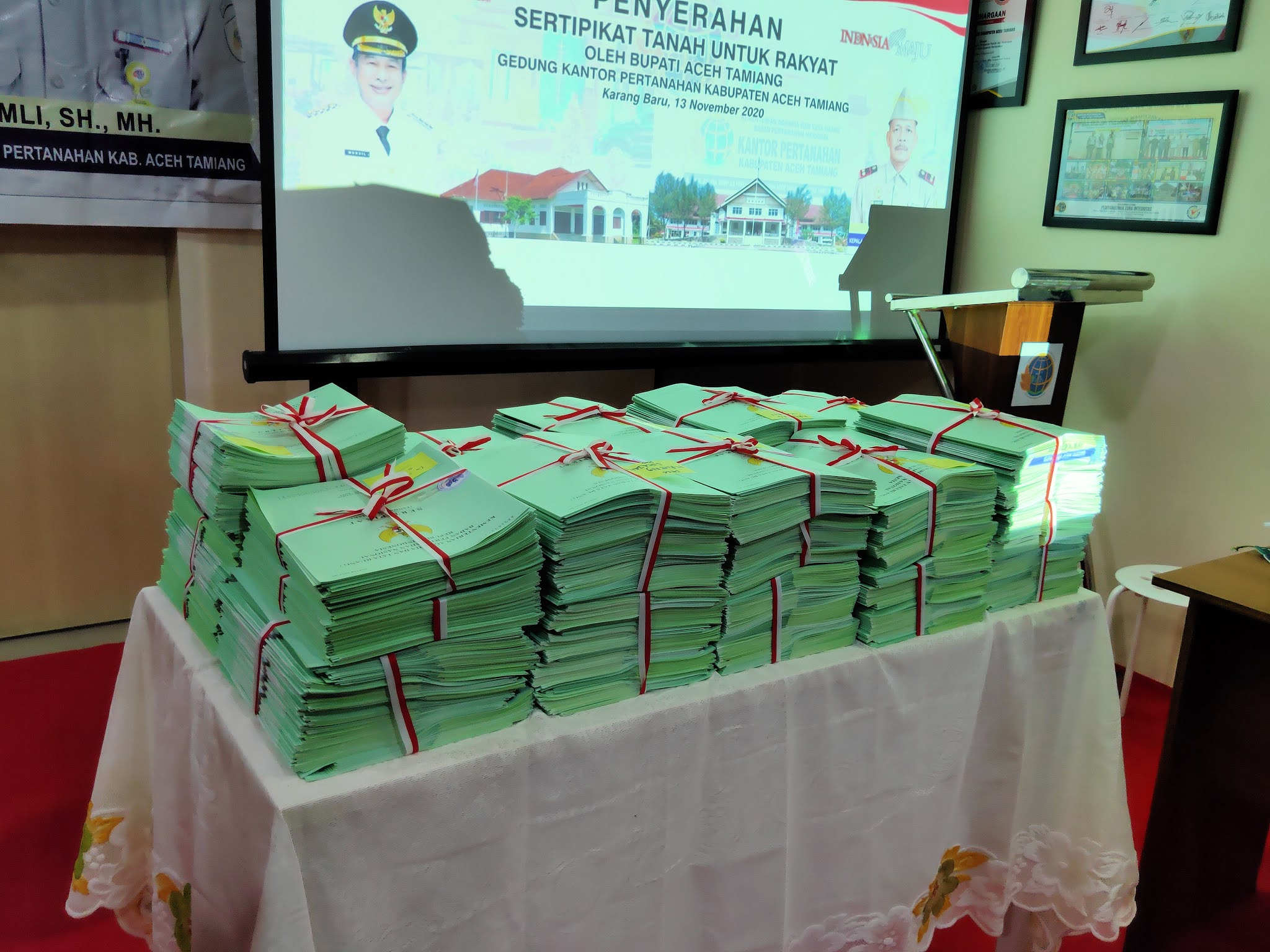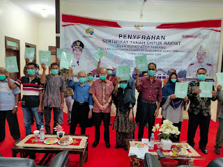 Dari jumlah seribuan tersebut, sebanyak 18 Bidang Sertifikat PTSL dan 10 Sertifikat Redistribusi diserahkan secara simbolis oleh Bupati Aceh Tamiang H. Mursil, SH, M. Kn kepada masyarakat bertempat di di Kantor Pertanahan Nasional Kabupaten Aceh Tamiang pada Jum’at (13/11/20) sekira pukul 11.30 Wib.