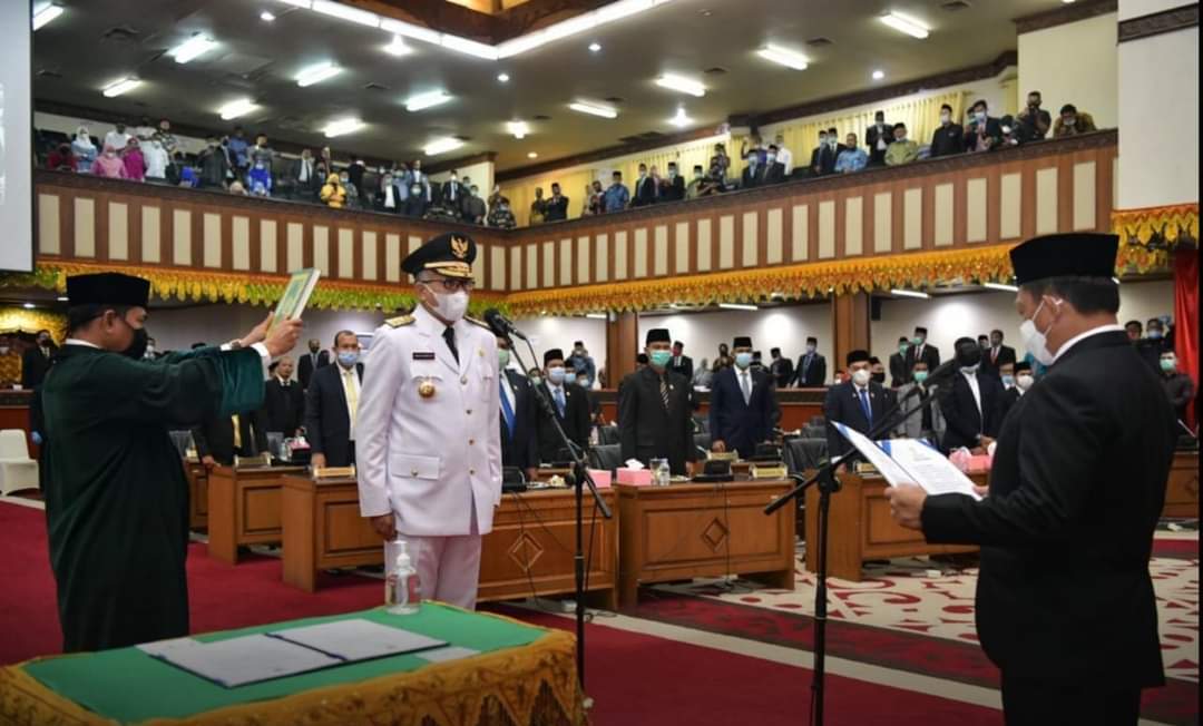 Pengambilan sumpah jabatan dan pelantikan Gubernur Aceh yang baru dilakukan pada rapat Paripurna Dewan Perwakilan Rakyat Aceh (DPRA) berdasarkan Keputusan Presiden RI Nomor 95/P Tahun 2020 tanggal 15 September 2020, Tentang Pengesahan Pemberhentian dengan Hormat Wakil Gubernur Aceh Sisa Masa Jabatan Tahun 2017-2022 dan Pengesahan Pengangkatan Gubernur Aceh Sisa Masa Jabatan Tahun 2017-2022.