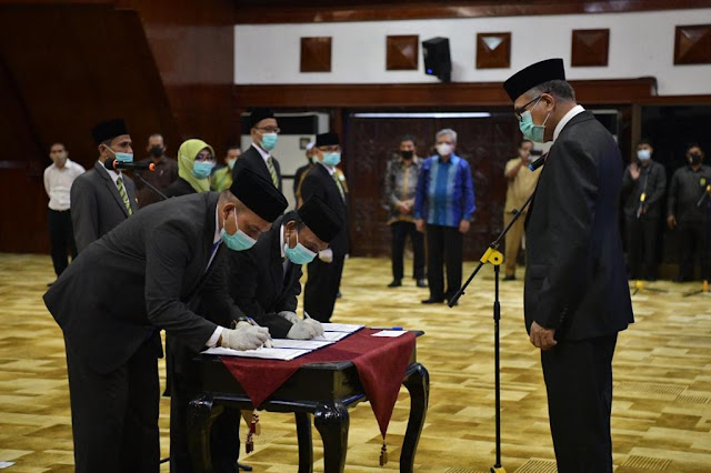 Selain anggota Komisi Informasi Aceh, pada kesempatan yang sama Gubernur juga melantik lima anggota Badan Baitul Mal Aceh periode 2020-2025.