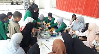 Rangkul Emak-Emak, Mahasiswa KKN Kelompok O72 Produksi Sabun Cuci Tangan dan Hand Sanitizer