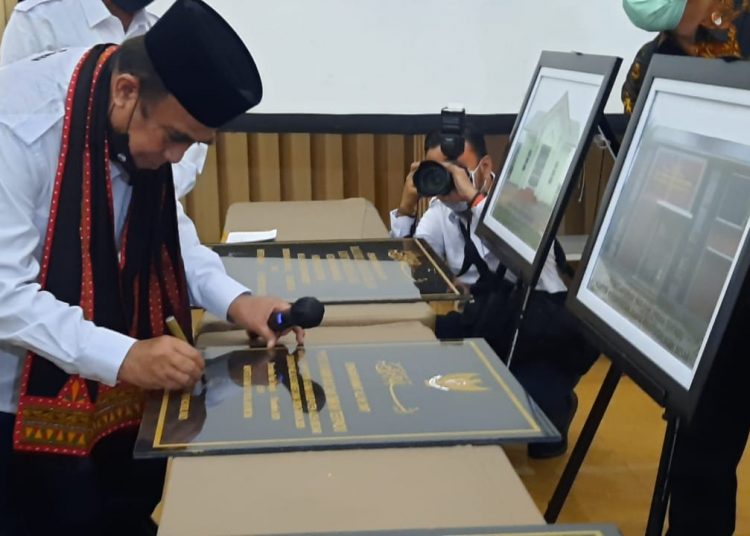 Habanusantara.net, Banda Aceh – Menteri Agama Republik Indonesia Jenderal TNI (Purn) H Fachrul Razi, di Hotel Grand Nanggroe Banda Aceh melakukan penanda tanganan prasasti peresmian Gedung Pusat Layanan Haji dan Umrah Terpadu (PLHUT) yang berlokasi di Kota Jantho, Minggu (13/12/2020).