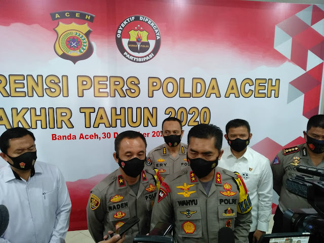 “Narkoba meningkat lebih dari 200 persen. Ada 469 Kg sabu, 138 ribu butir ektasi, ganja 1,5 ton dan hasil ladang ganja 83,3 hektare yang berhasil kita ungkap. Secara pretasi kinerja ini membanggakan, tapi secara peredaran gelap narkoba ini suatu hal yang memperihatinkan, itu lah yang perlu ditangani bersama-sama ” kata Kapolda Aceh Irjen Pol Wahyu Widada dalam konferensi pers akhir tahun 2020, di Loby Mapolda Aceh, Rabu (30/12/2020).