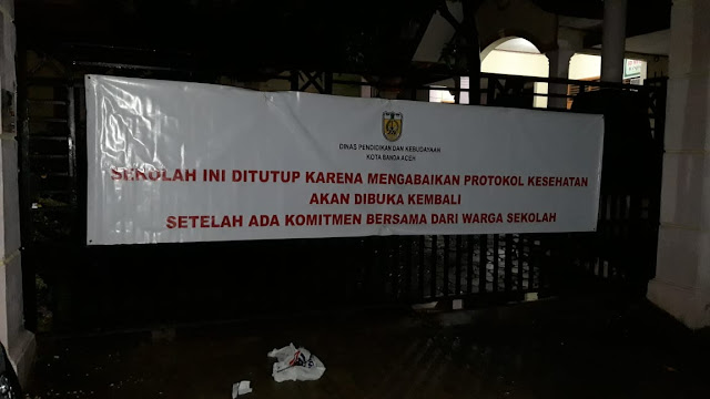 Tindakan penutupan tersebut didasari Keputusan Wali Kota Banda Aceh terhadap Protokol Kesehatan (Prokes) di setiap sekolah dengan memakai masker, mencuci tangan pakai sabun, cek suhu tubuh dan menjaga jarak (physical distancing).