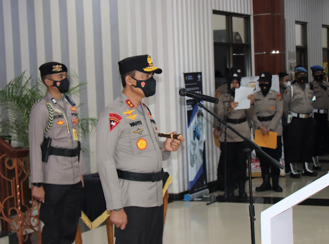 Habanusantara.net, Banda Aceh, Kapolda Aceh Irjen Pol Wahyu Widada pimpin upacara serah terima jabatan sejumlah pejabat utama dilingkungan Polda Aceh, di Lobi Utama Polda Aceh, Selasa (5/1/2021).